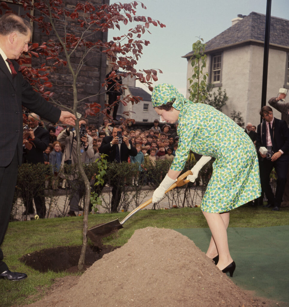 Her Majesty marks her visit to Canongate Manse with a tree planting.